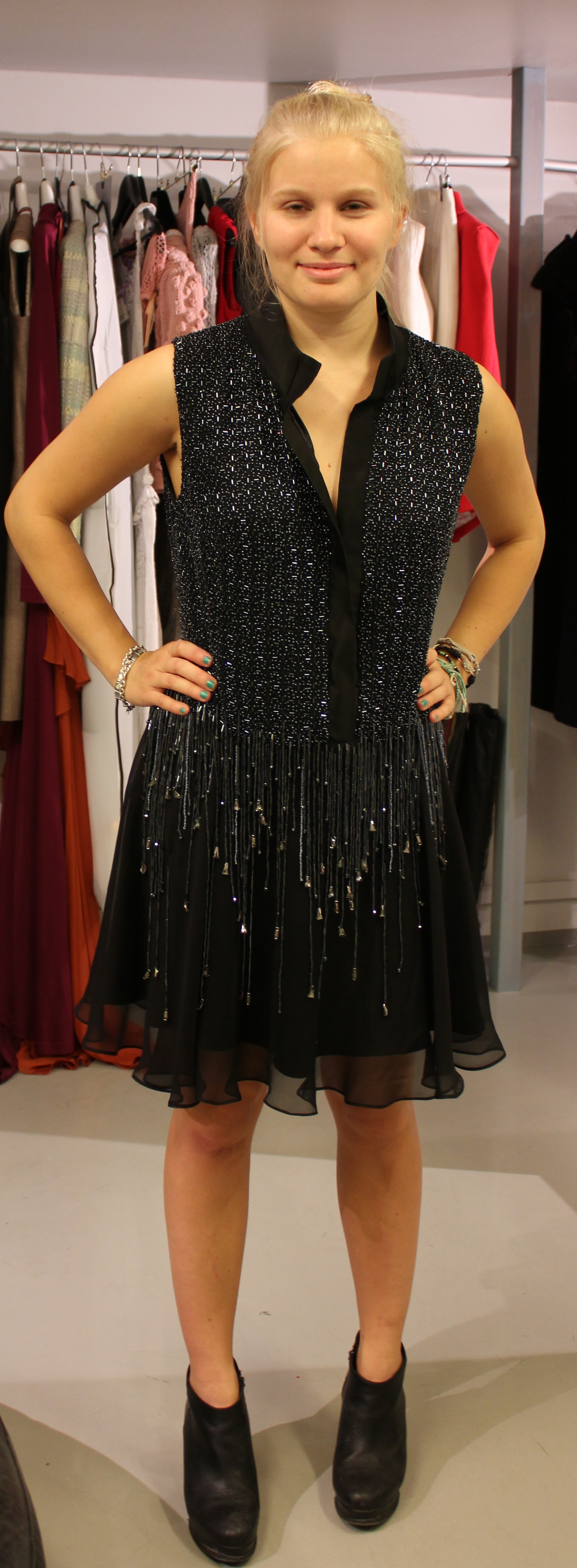 Great Gatsby -henkinen ihanasti laskeutuva kokopitkä iltapuku, Kate Mossin Topshopille suunnittelema. Istuu kuin unelma. Maksoi 228 euroa, josta 70% ale!