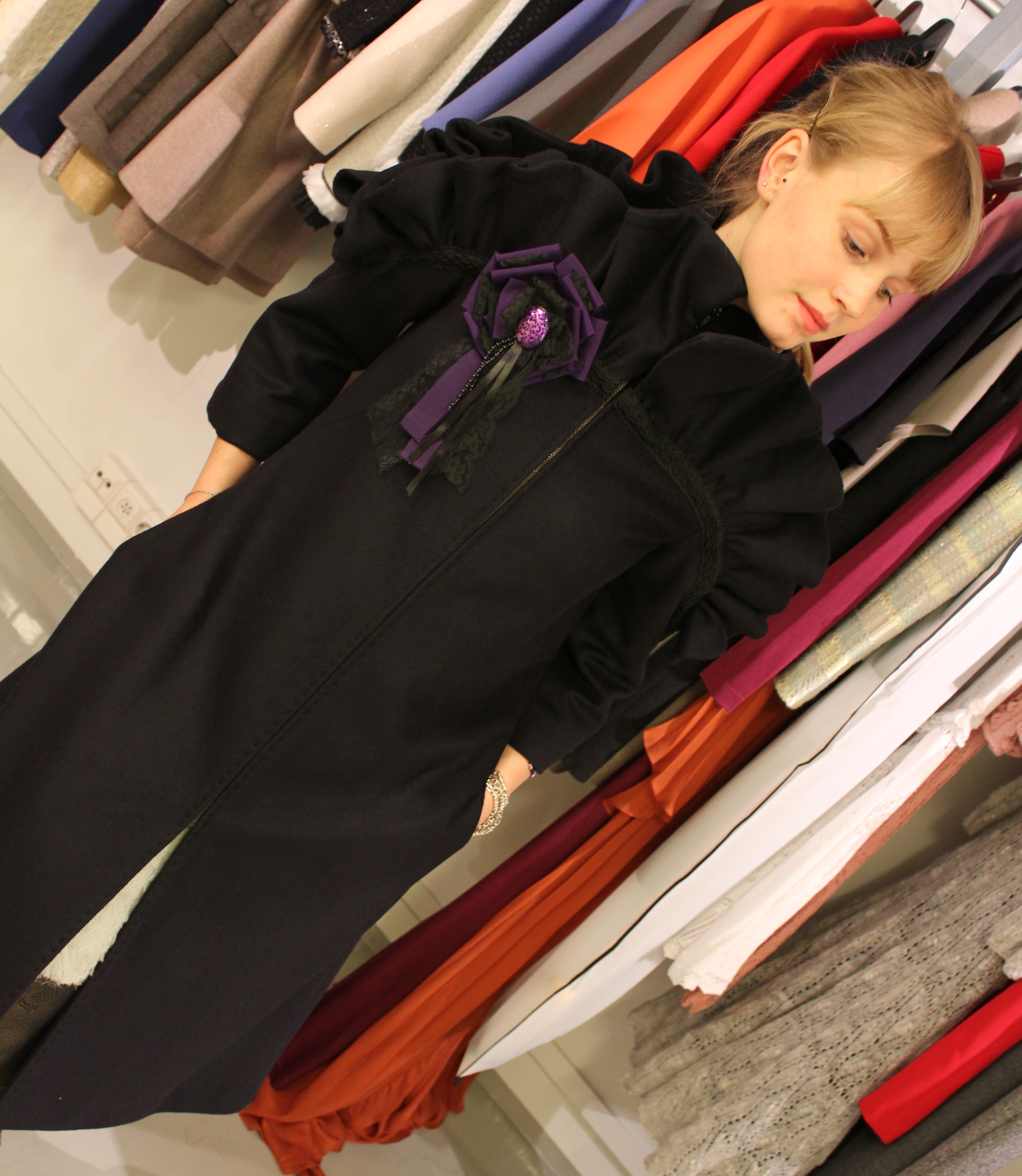 Kristina Viirpalun takkeja tulee syksyllä Ajattareen. Niissä on ihanimpia pitsejä, klassikkomalleja ja mielikuvituksellisia luomuksia. Käyn niitäkin sovittelemassa myöhemmin, mutta tässä yksi herkkupala etukäteen: