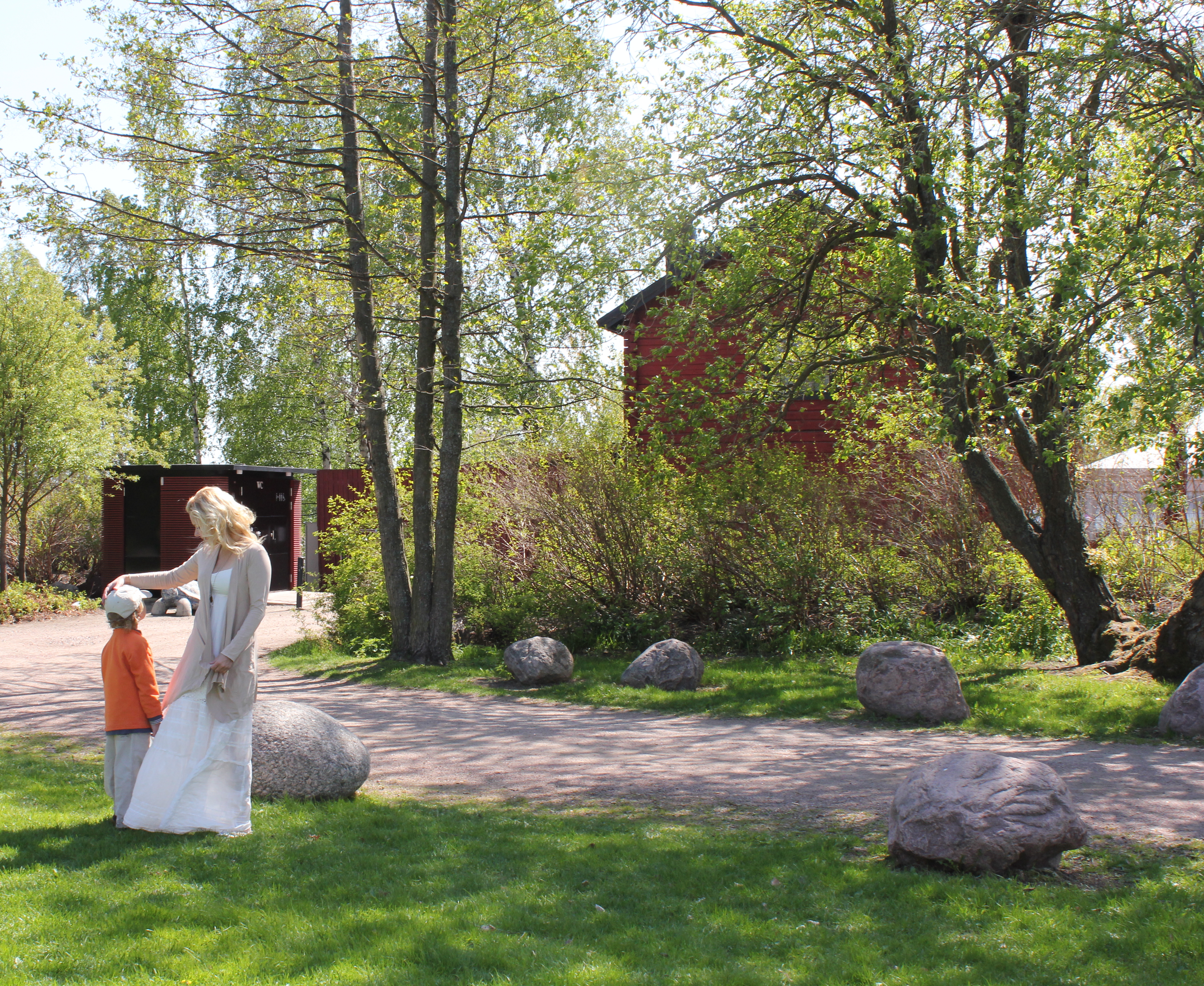 Taustalla näkyvässä amfiteatterijäljitelmässä järjestetään kesäteatteriesityksiä. Tunnelmallista kerta kaikkiaan.