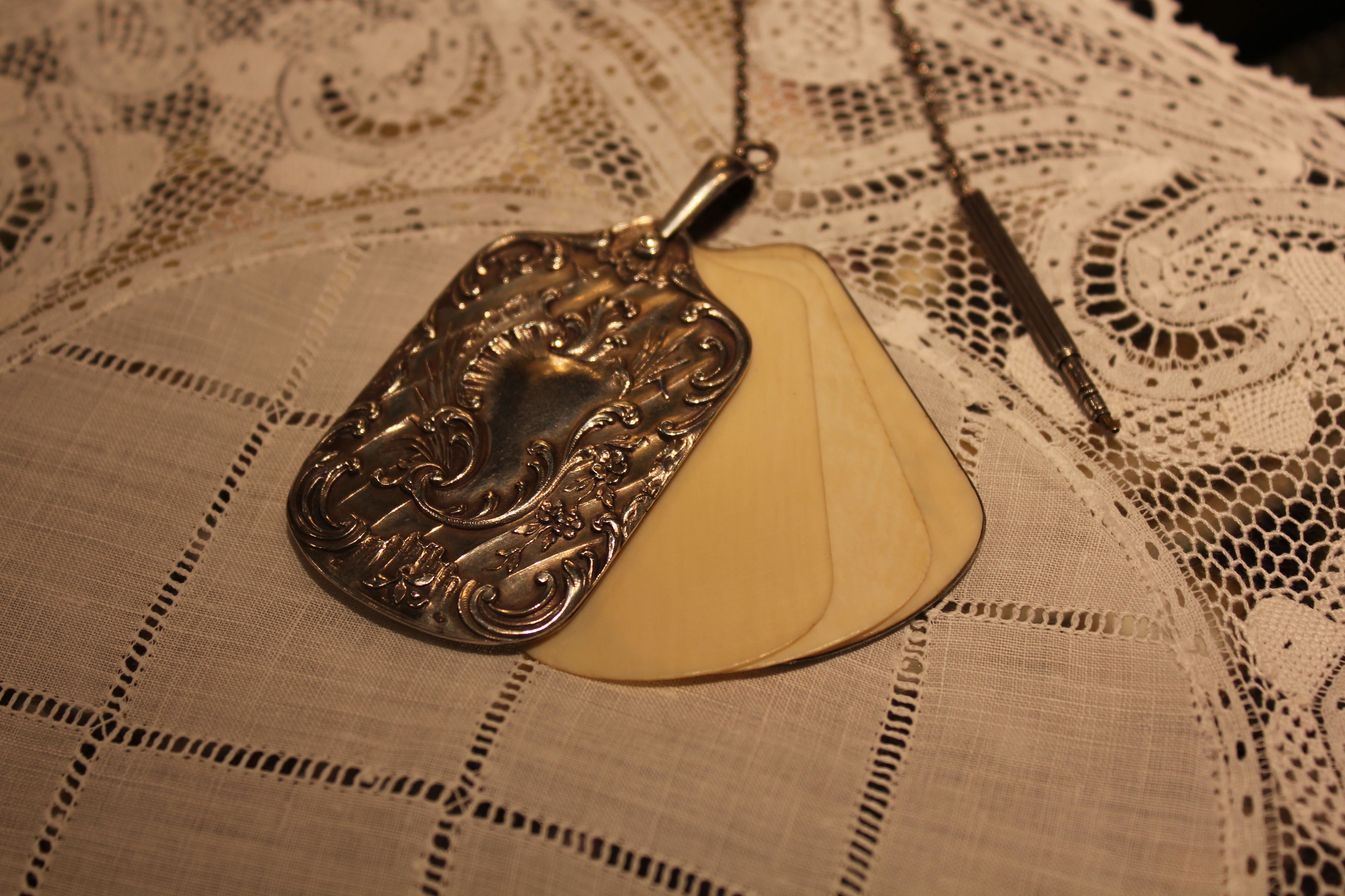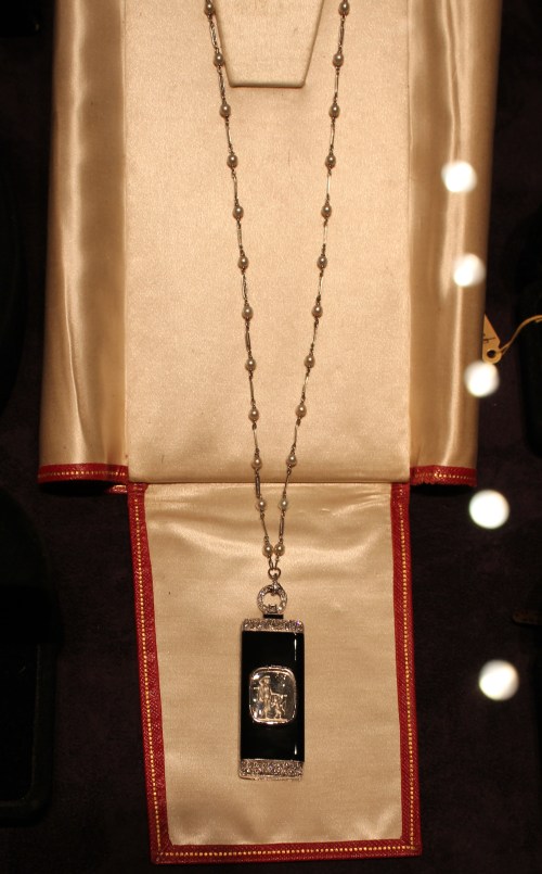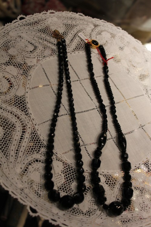 Kuvani ovat usein vähän vinksinvonksin ja sikinsokin, sillä kiertelen yleensä kuvailemassa yksin tai erittäin innokkaan 6-vuotiaan hovikuvaajani kanssa (jonka kuvat ovat usein huomattavasti omiani osuvampia)… Tässä siis puolet löytämästäni 1920-luvun kaulakorusta.