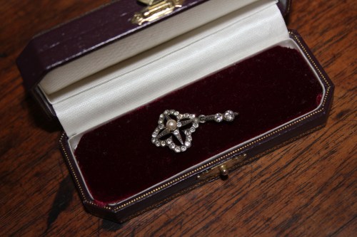 Niille jotka odottavat tätä äärimmäisen tärkeää tietoa, kerron samantien että roistonmetsästykseni meni mynkään. En saanut Nizzan antiikkimarkkinoilta kiinni rakkaita kenkiäni varastanutta roistoa. Lohdutukseksi löysin sentään tämän 1900-luvun alun riipuksen:
