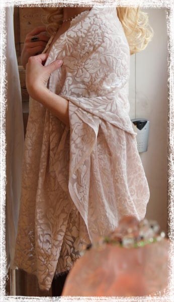 Oona worked on the dress for 80 hours, before she stopped counting… Every single silver chain, each pearl, every bit of vintage lace is personally sourced and chosen with love and care, then the dress itself… Handmade in Heaven.