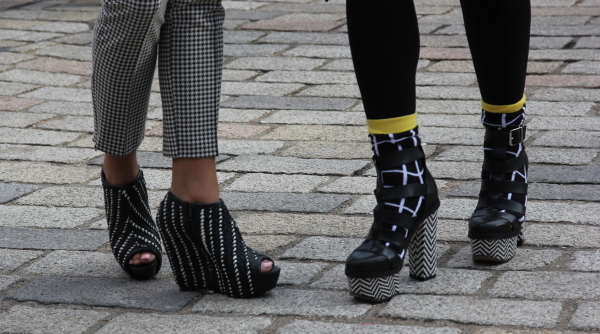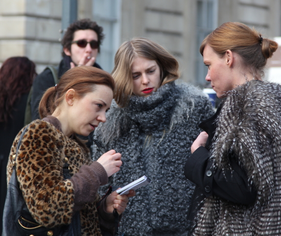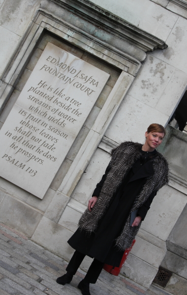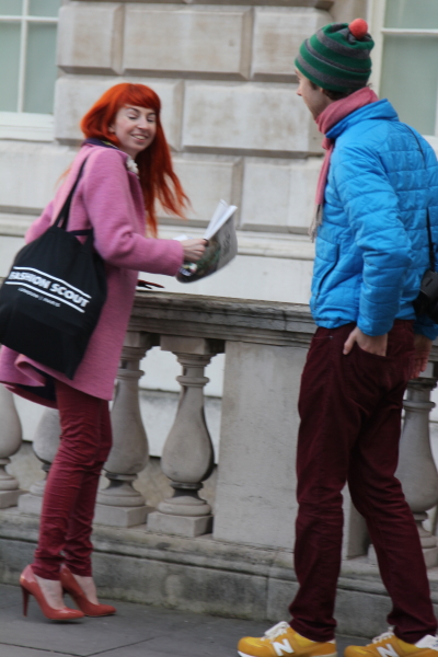 Heli Kajo, below, didn’t want to be photographed without make-up and with new experimental hair – but as she always has the coolest accessories, those I immortalized. A large golden Donald, furry ginger scarf, pinkish hair. I could never pull something like that off, Heli always can.