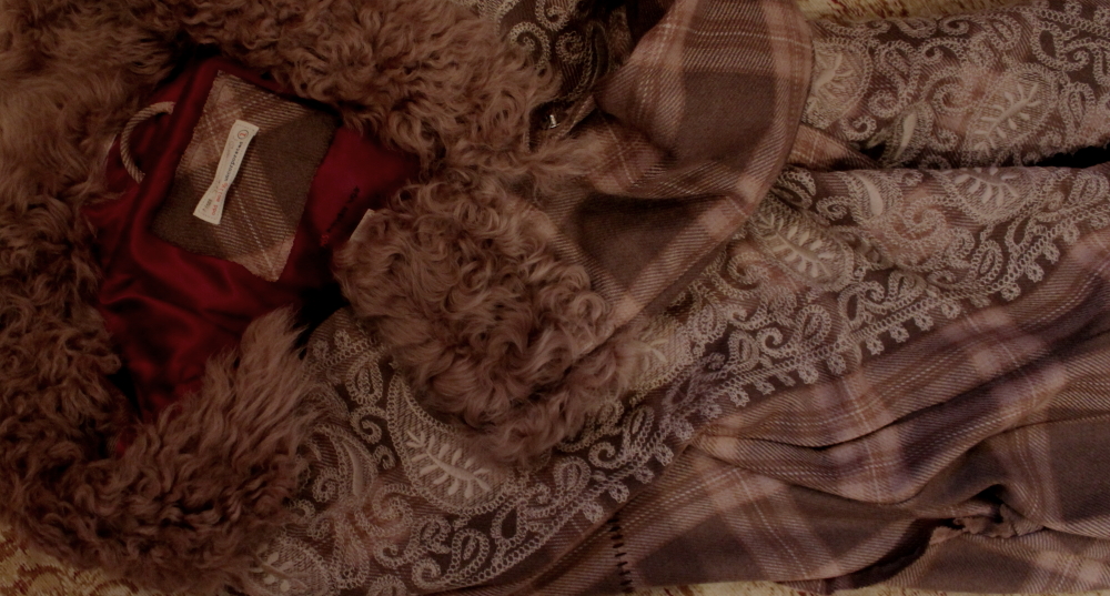 Look at the inside lining of the coat… Luxurious chocolate-brown silk, with delicate lace lining.